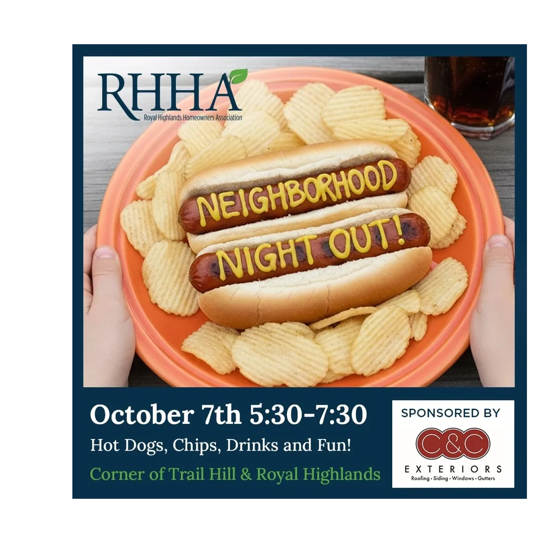 RHHA’s annual social gatherings and meetings include but are not limited to the following events. Specific dates, locations, and times are communicated via the quarterly newsletter and timely neighborhood emails.